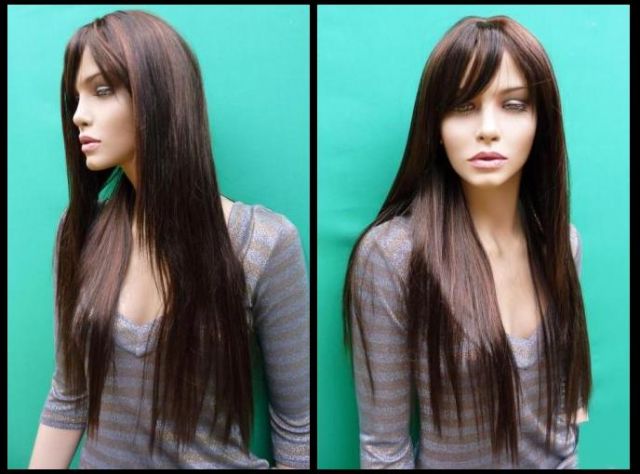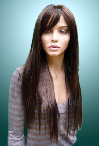 Hnědočerná paruka rovná je vyrobena z kvalitního kenakelonu a vypadá velmi přesvědčivě.